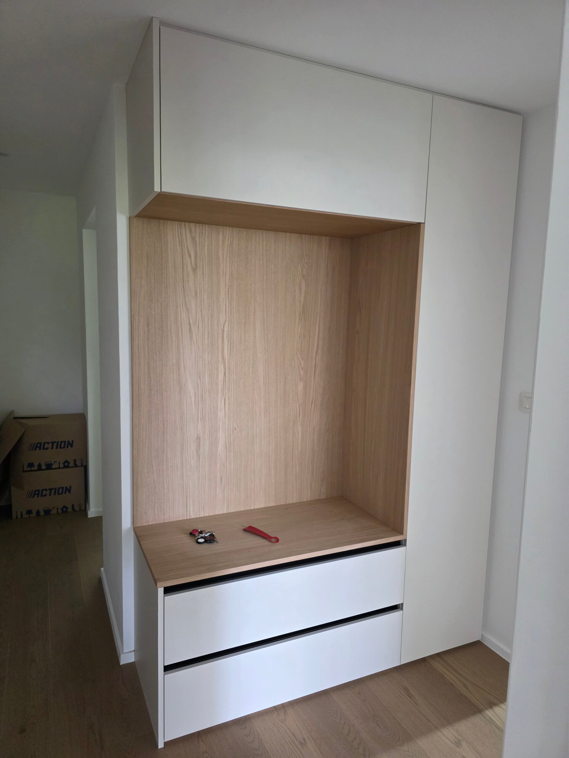 Notre équipe d’artisans menuisiers passionnés est à votre écoute pour la création et la pose de vos meubles et aménagements sur mesure : placards, bibliothèques, bureaux ainsi que cuisines et salles de bain complètes, espalier.